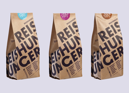 Reishunger是德国一个大米品牌,专注于销售世界各地正宗和优质大米。苗条而简洁的包装设计,强调大米的原料的纯粹。包装上使用多种颜色的标签,亦有多种选择菜单,帮助消费者区分不同类型的大米。