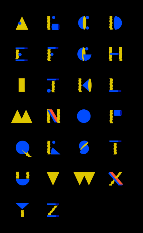 加拿大设计师 Nicolas Menard 设计的一套英文字体,名为Futile Devices-Kickers,以简单图形组合成字母,在动态展示时尤其有意思,声音也是一大亮点。